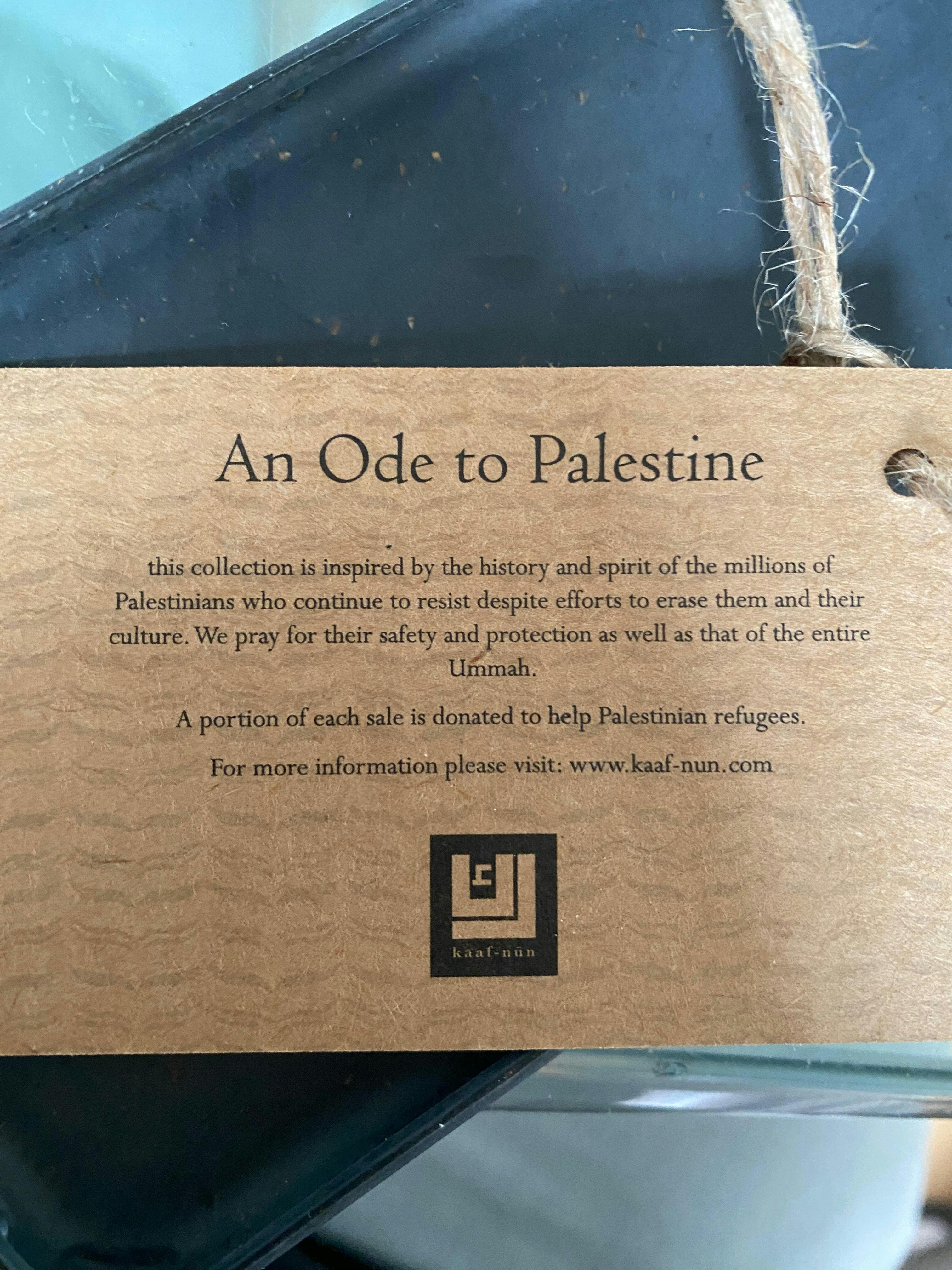• Purchases of Palestinian-inspired items directly support humanitarian aid in Palestine through our trusted partner, Muslim Hands.