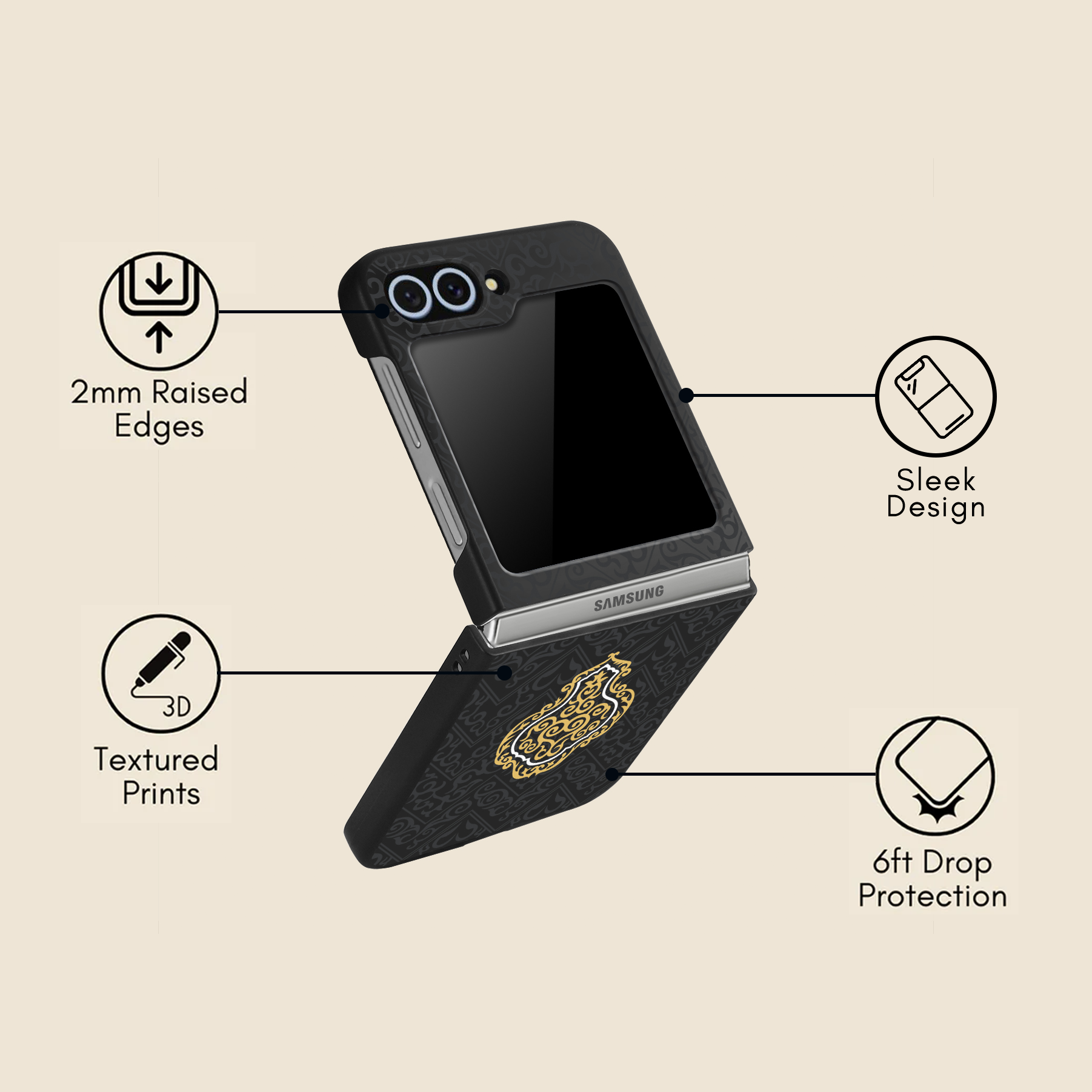 This design takes inspiration from the refined embroidery stitched into the iconic cloth covering the building at the epicentre of the universe - the Kaaba. Class and sophistication meet in this beautifully designed Samsung case. Its intricate embroidery pattern is inspired by the iconic Kaaba, bringing a representation of your faith to your everyday life. Keep your phone protected with our eco-friendly cases, inspired by designs made to represent YOU.