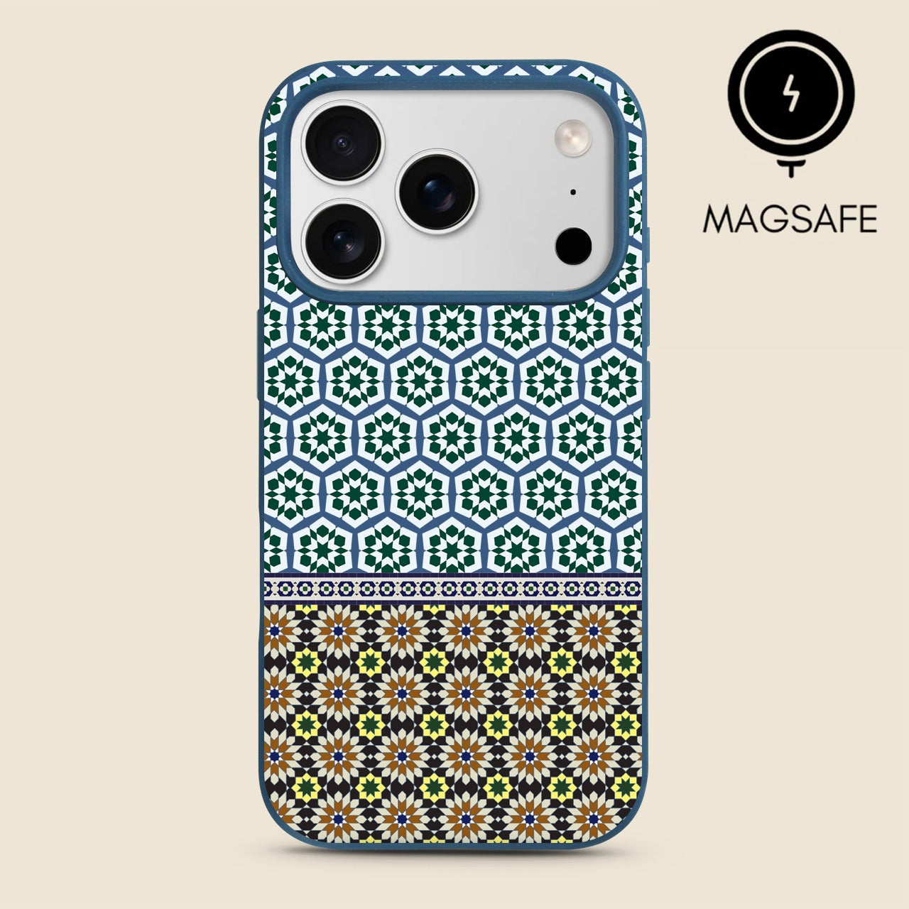 Schmücken Sie Ihre Handyhülle mit den aufwendigen Flechtarbeiten aus Fliesen, die in ganz Marokko zu finden sind. Diese als Zellij bekannte Form des Designs macht ihrem Namen als „Prinz der Fliesen“ alle Ehre und bietet im Laufe der Jahrhunderte Inspiration zum Nachdenken und Nachdenken.