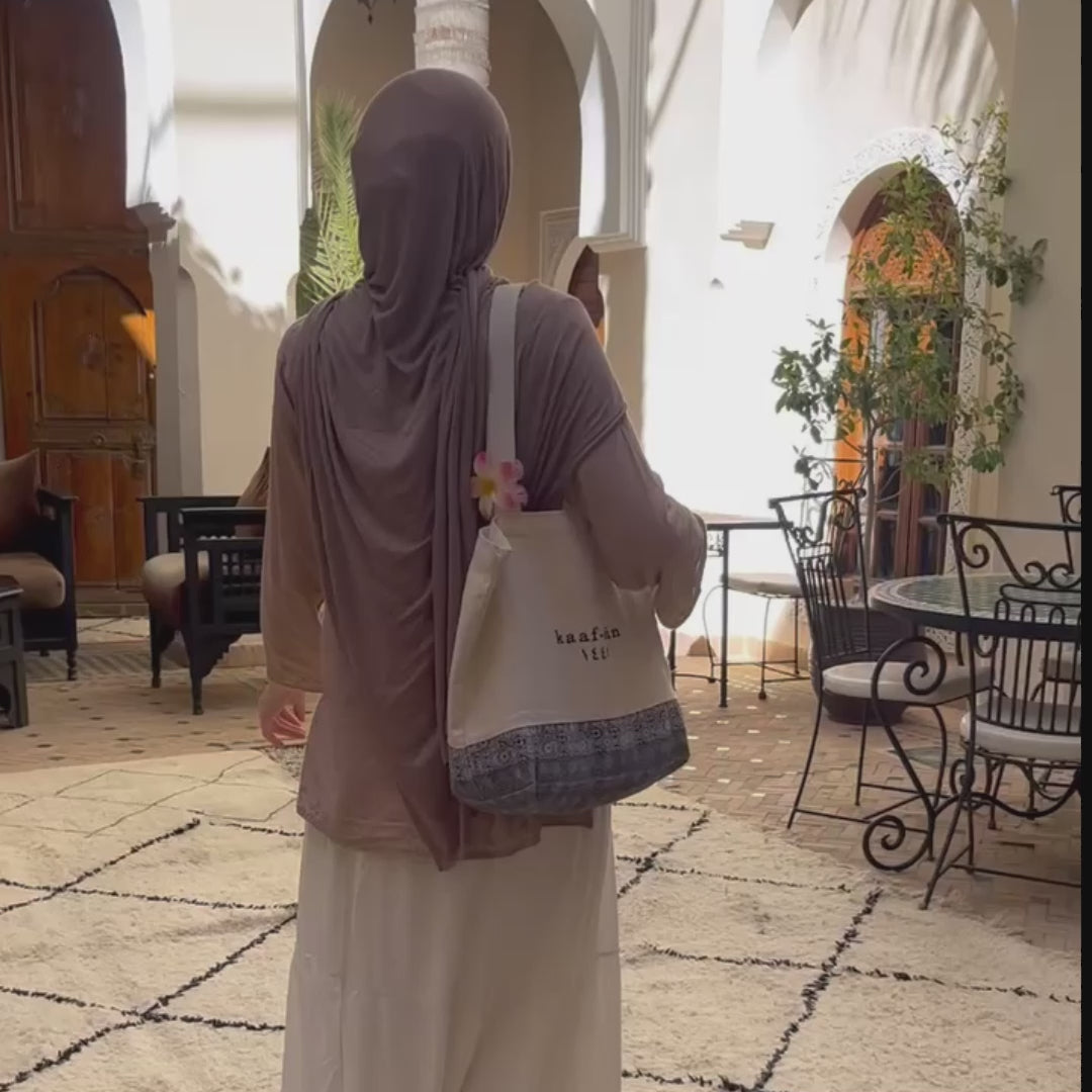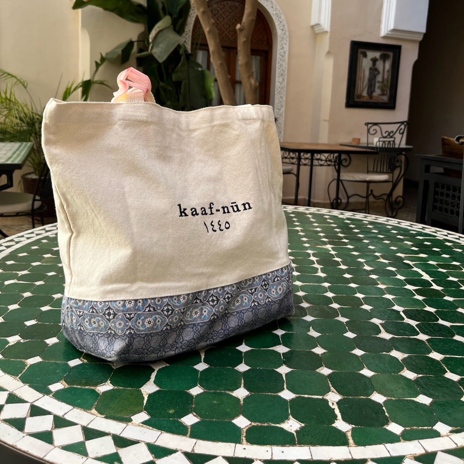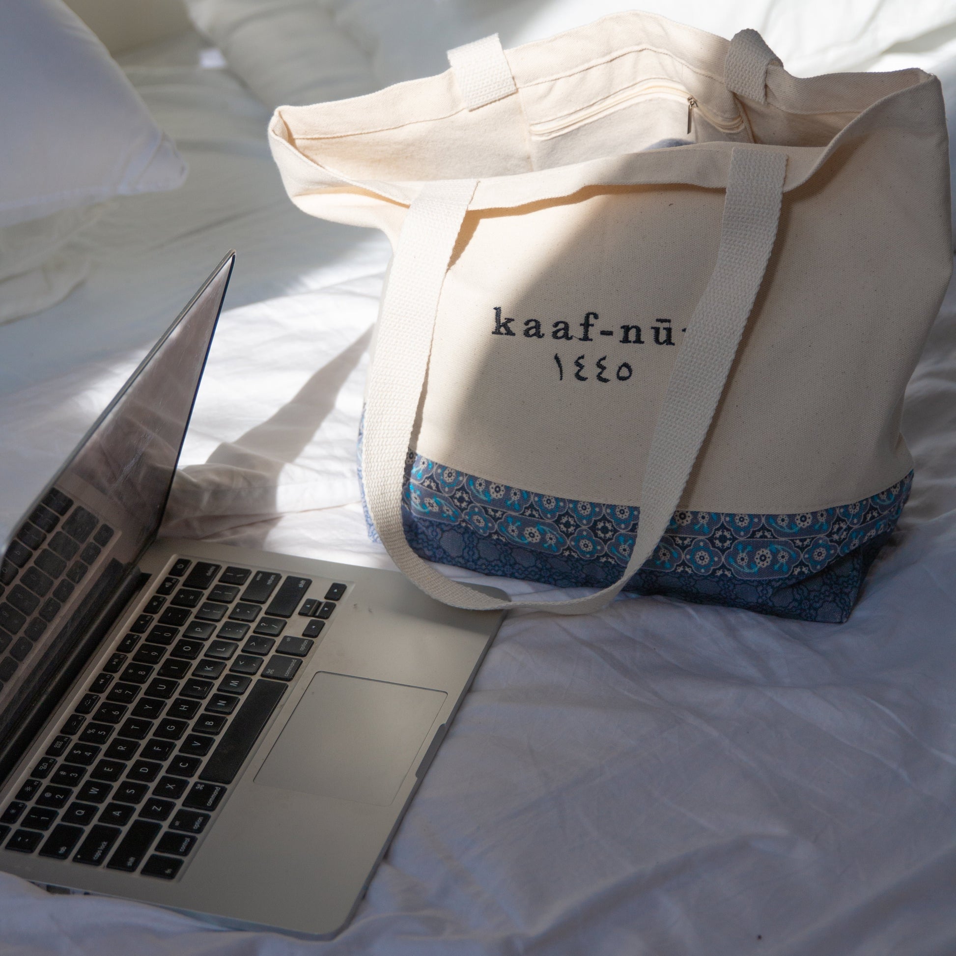 I think the designs around the bottom of my bags are beautiful and they have been a conversation starter as people ask me about kaaf-nun. It's great that purchasing the bag gives me an opportunity to give financial help to Palestinians, but I think that people asking and the chance to have a discussion about events in a friendly and natural way is important too. I love the beauty and quality of everything I have bought from Kaaf-nun.