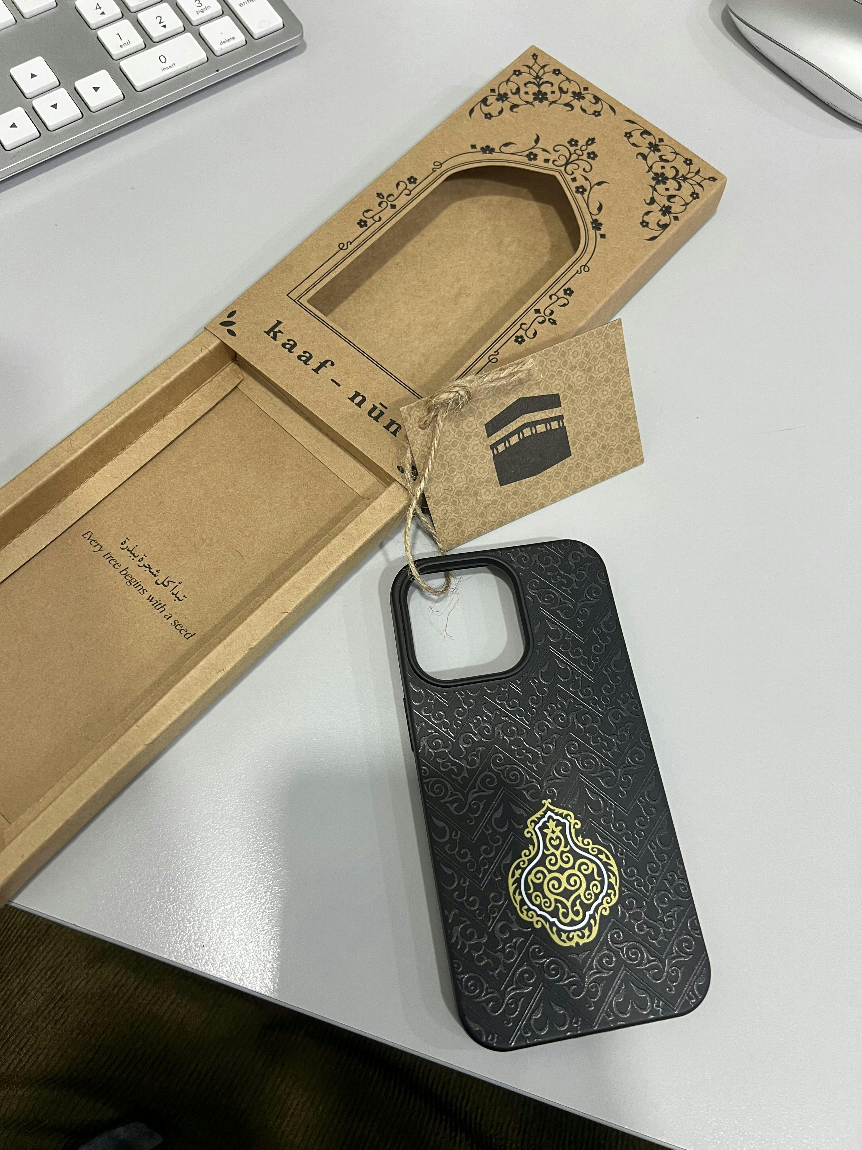 This design takes inspiration from the refined embroidery stitched into the iconic cloth covering the building at the epicentre of the universe - the Kaaba. Class and sophistication meet in this beautifully designed iPhone case. Its intricate embroidery pattern is inspired by the iconic Kaaba, bringing a representation of your faith to your everyday life. Keep your phone protected with our eco-friendly cases, inspired by designs made to represent YOU.