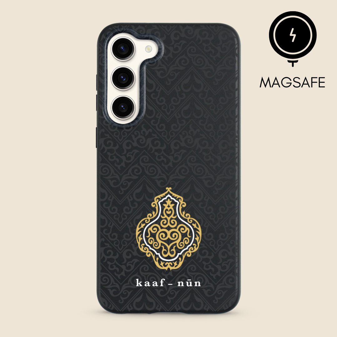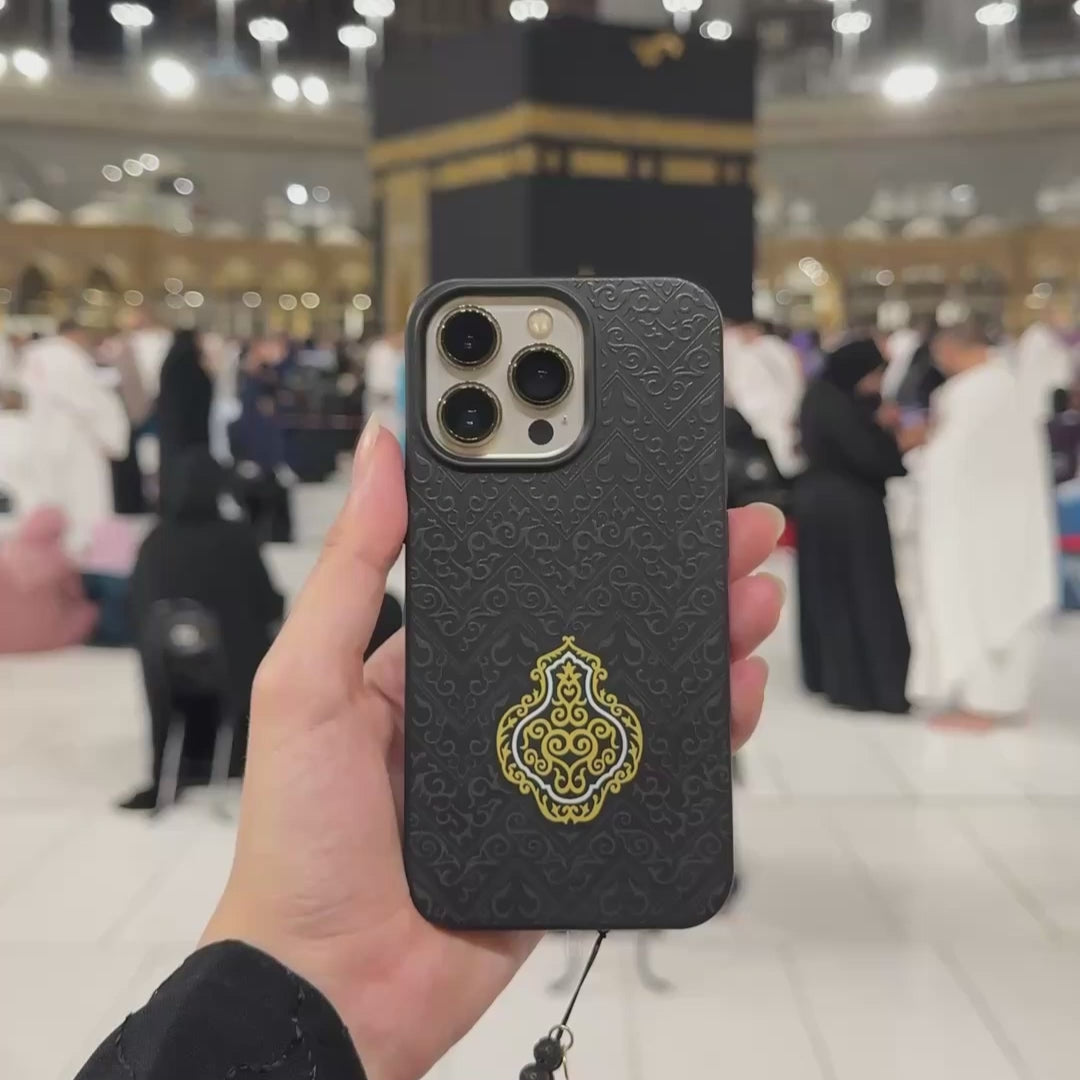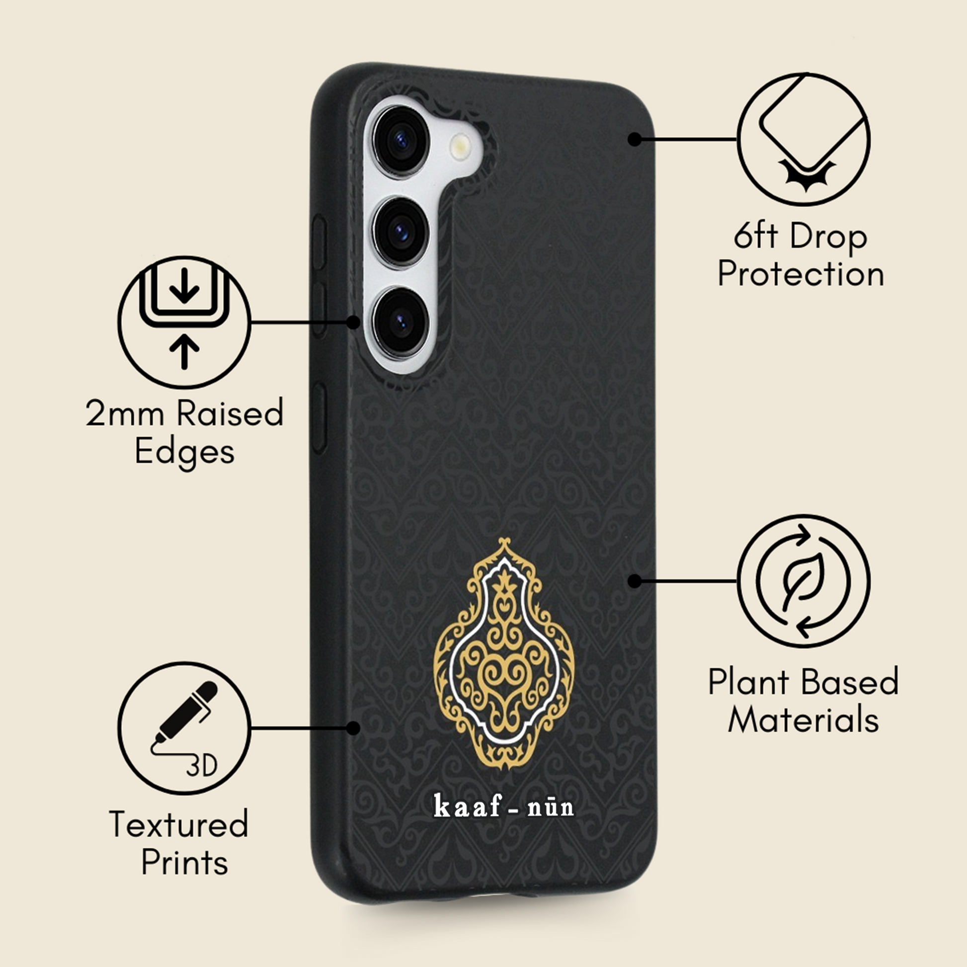 This design takes inspiration from the refined embroidery stitched into the iconic cloth covering the building at the epicentre of the universe - the Kaaba. Class and sophistication meet in this beautifully designed Samsung case. Its intricate embroidery pattern is inspired by the iconic Kaaba, bringing a representation of your faith to your everyday life. Keep your phone protected with our eco-friendly cases, inspired by designs made to represent YOU.