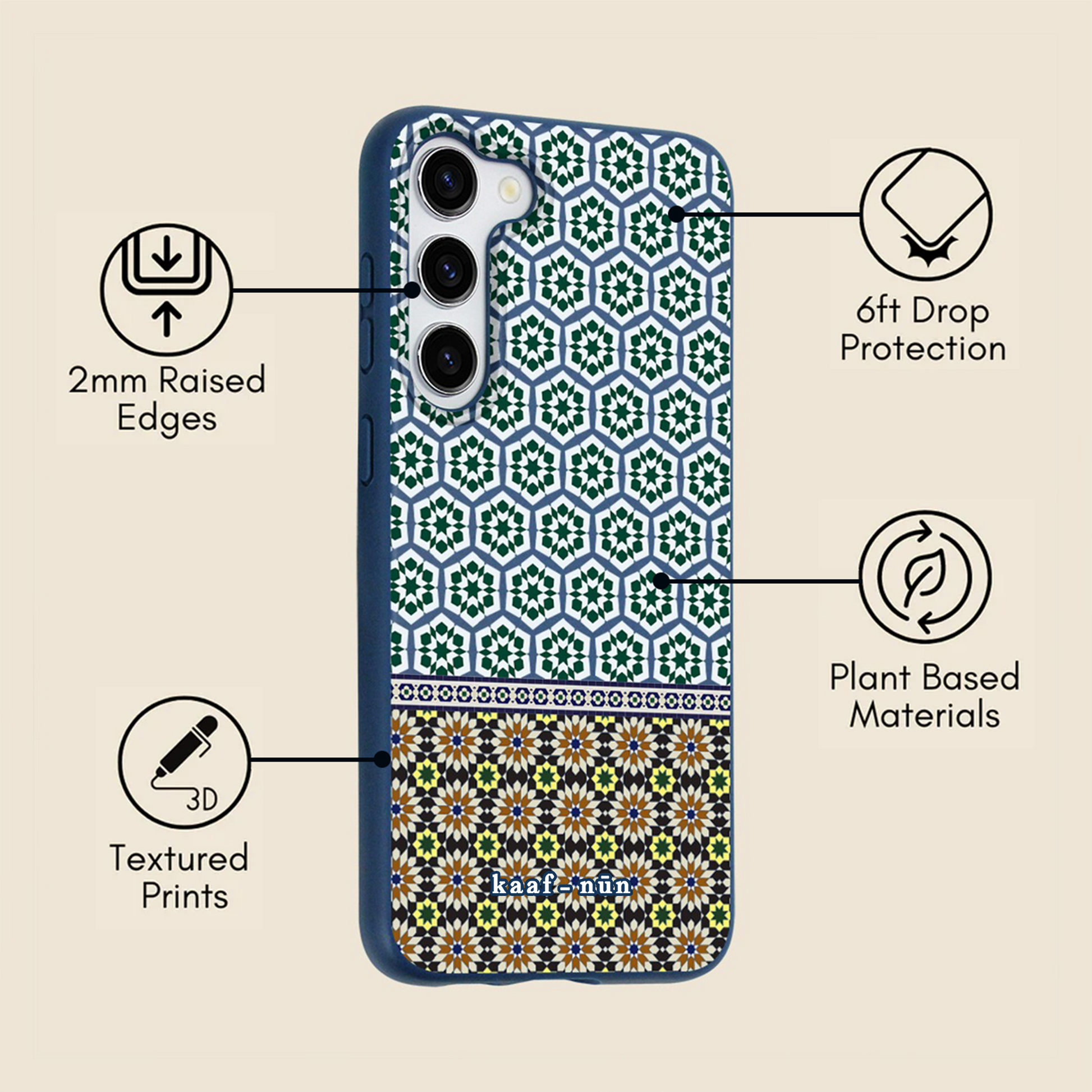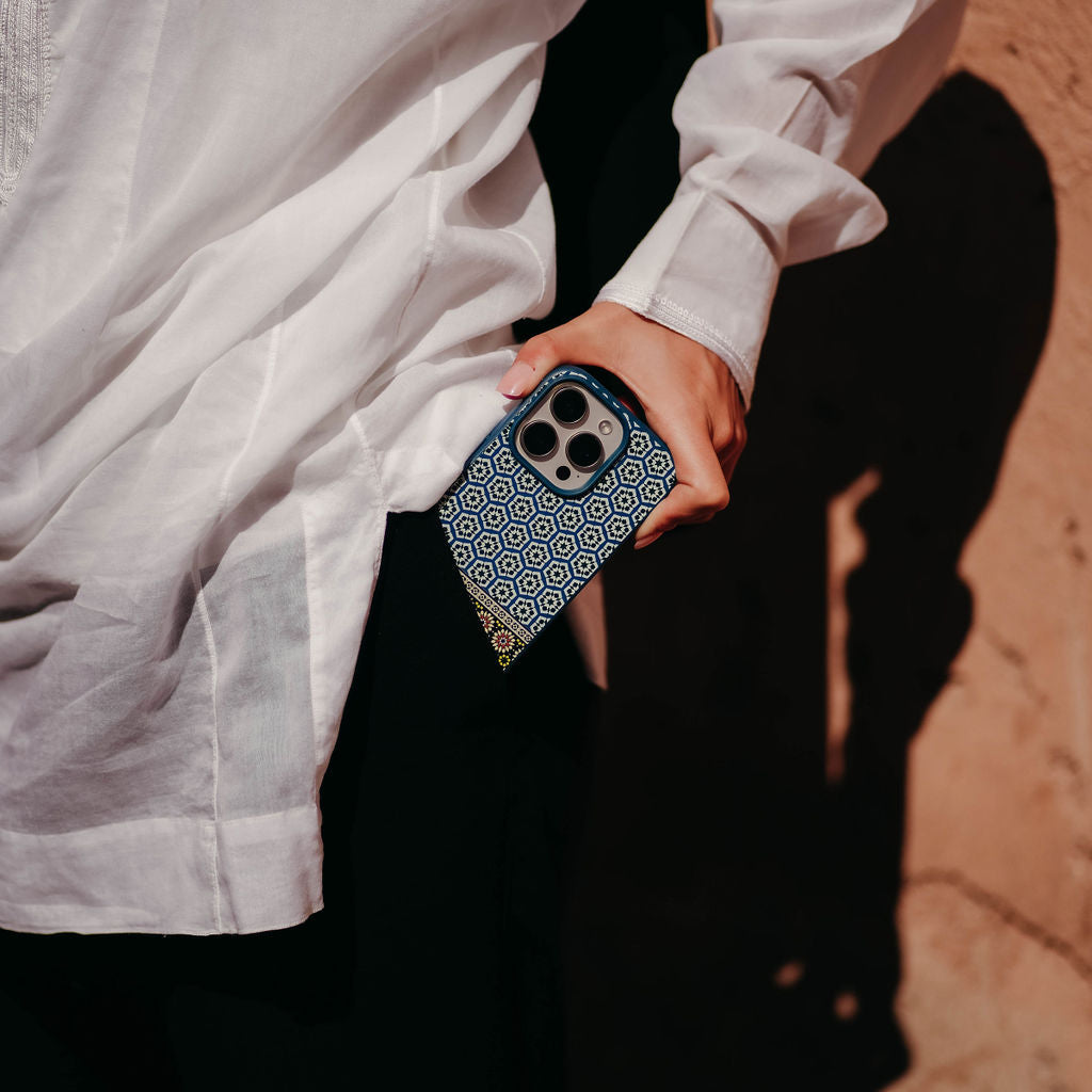 Adorn your phone case with the intricate interlacing tile work found throughout Morocco. Known as Zellij, this form of design truly lives up to its name as the 'Prince of Tiles' - providing inspiration for reflection and contemplation throughout the ages.